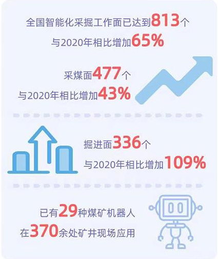 《深化“互联网+先进制造业”发展工业互联网的指导意见》《煤矿智能化建设指南(2021年版)》《“十四五”机器人产业发展规划》等政策的相继发布,为智能矿山建设提供政策支撑。