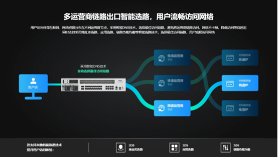 • 多运营商链路出口智能选路,用户流畅访问网络