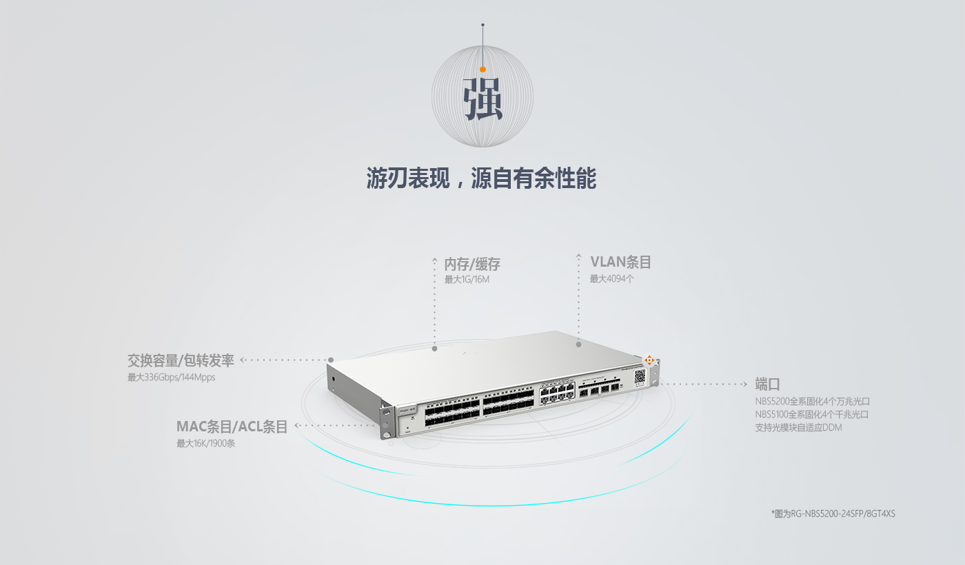 配置24个千兆电口,4个SFP+万兆光口插槽,监控网可带摄像头400个